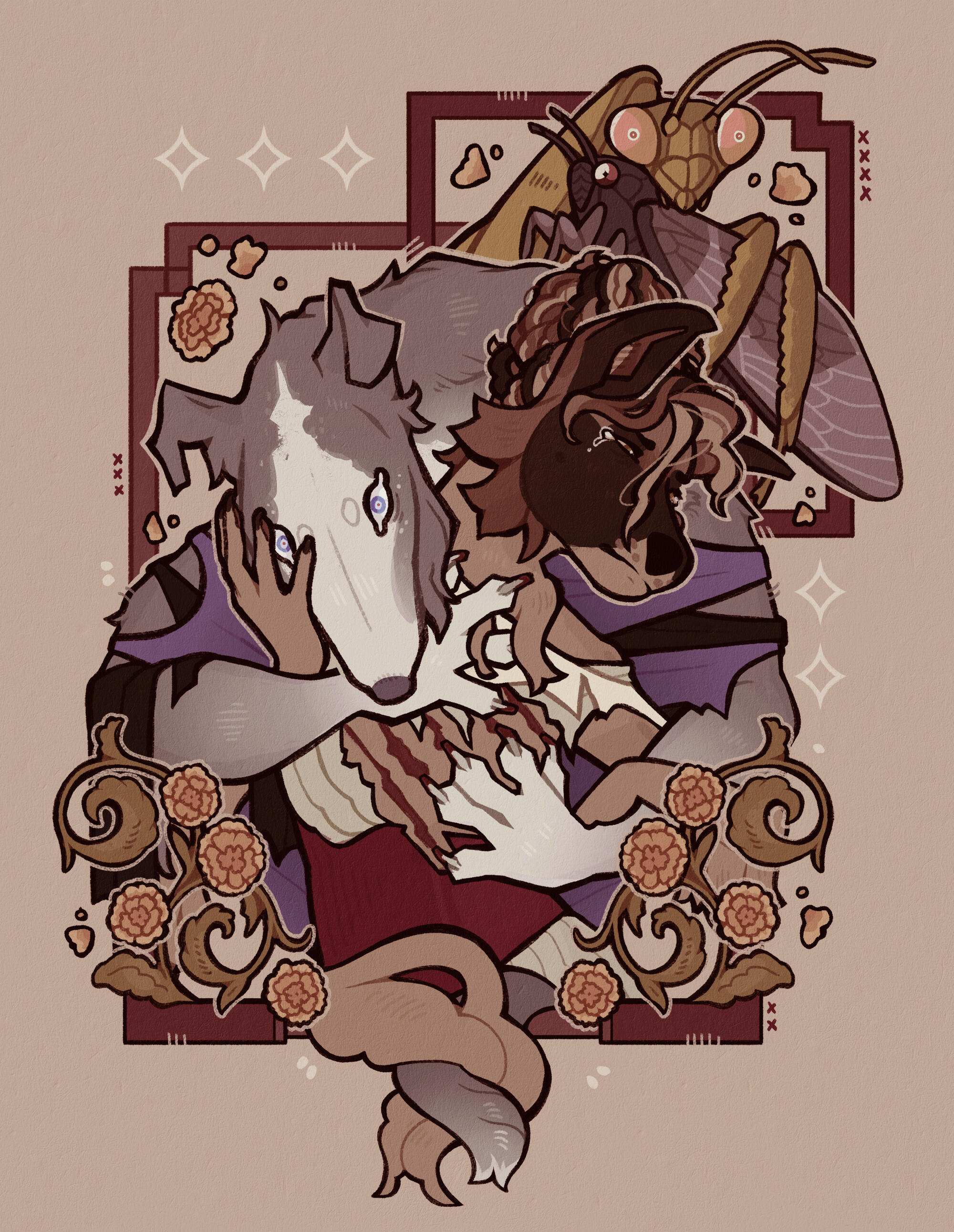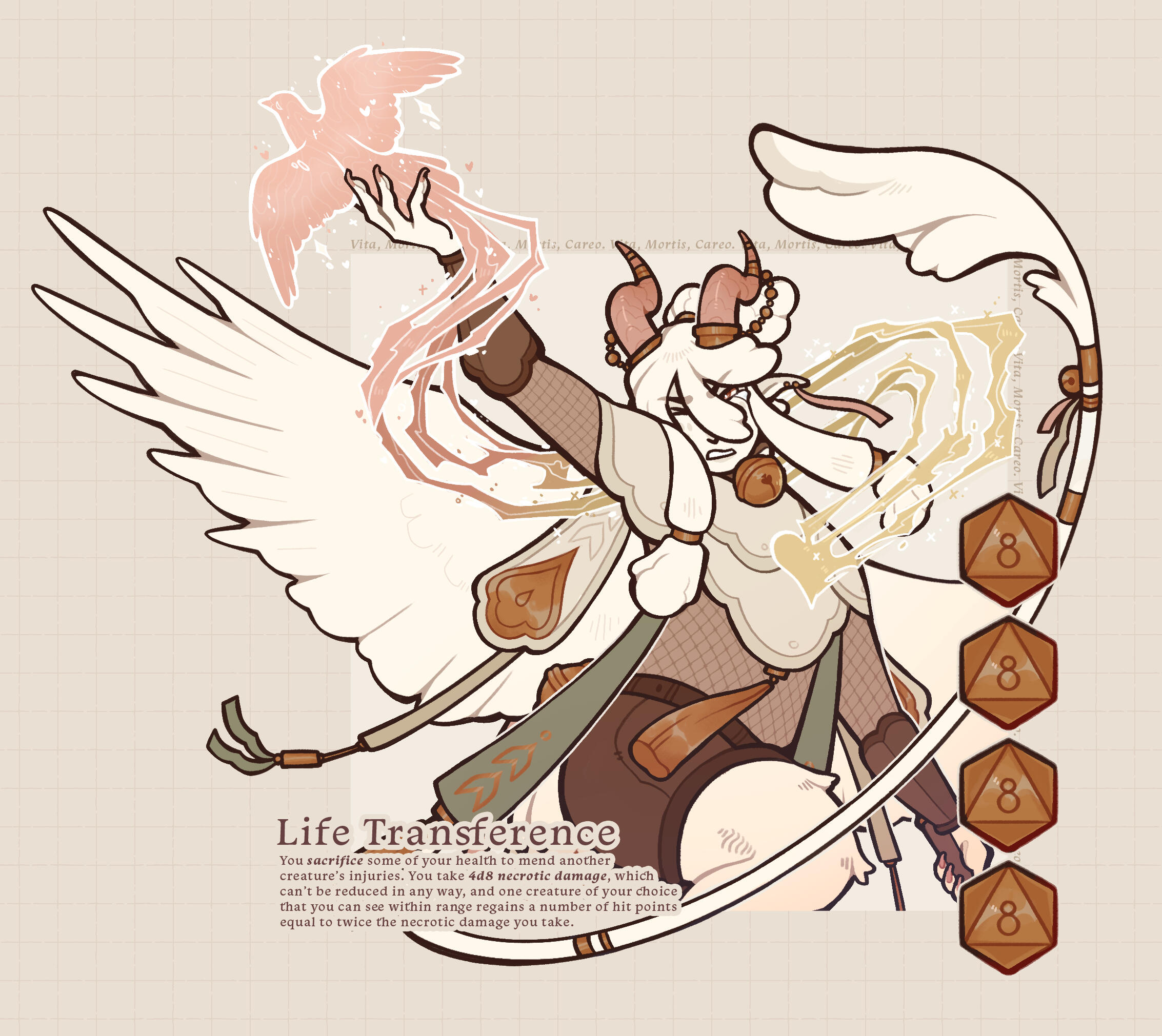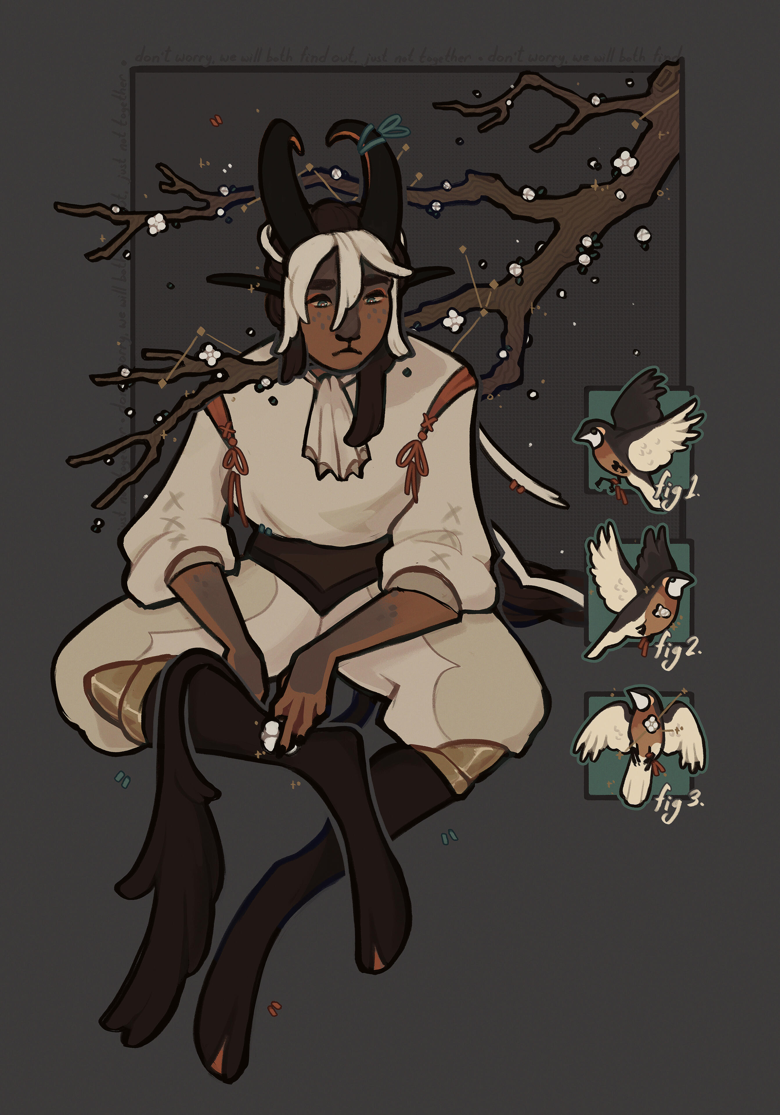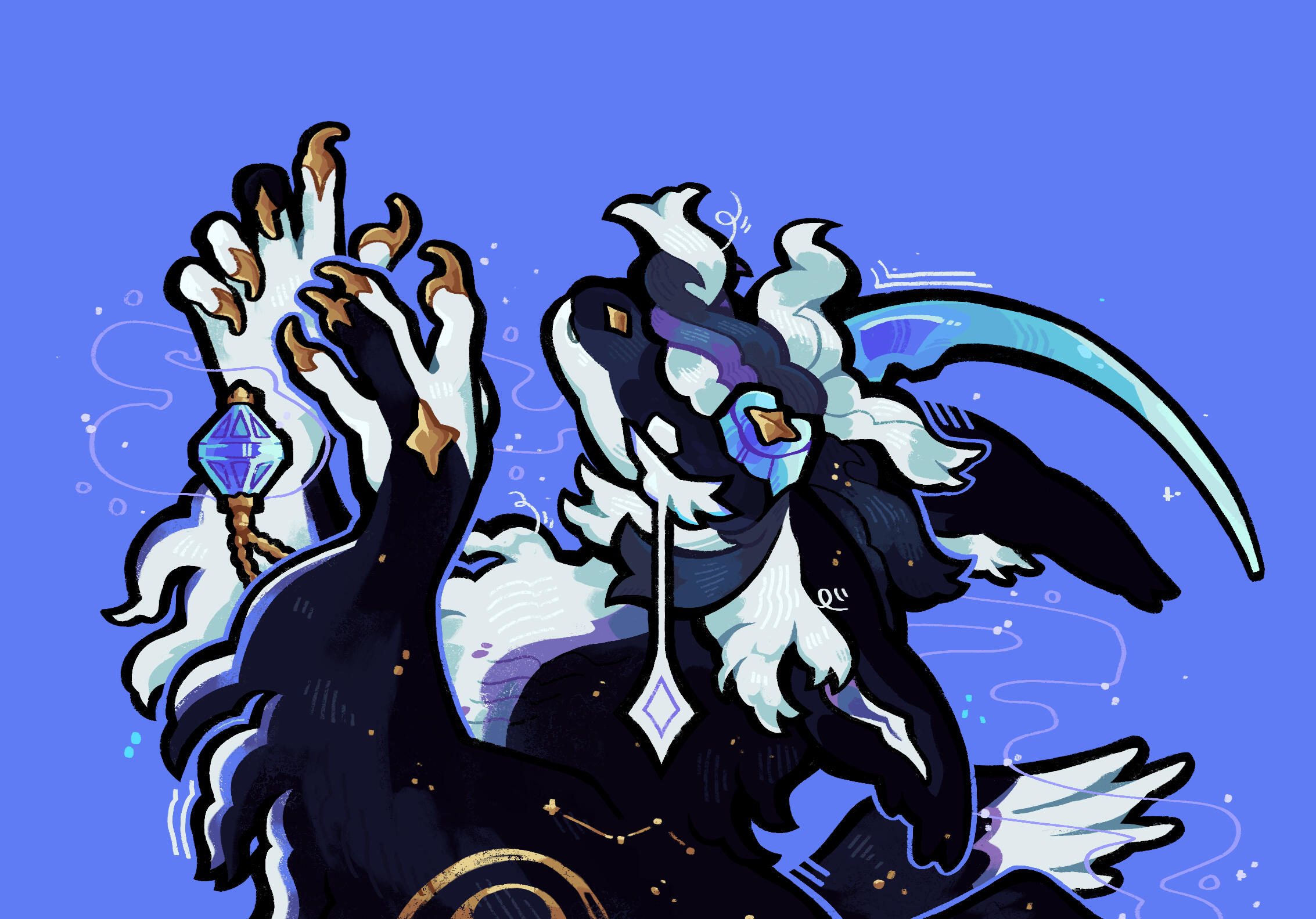 Illustration of your character, simple props free of charge. Detailed props, backgrounds, etc. may add fee.Often experimental in nature, it's heavily preferred if your character has some sort of symbolism, lore, or aesthetic I can work with! If you have a specific piece in mind that you enjoy the layout of, be sure to include that in your request for reference.Please let me know if there's objects or other elements you want me to include!